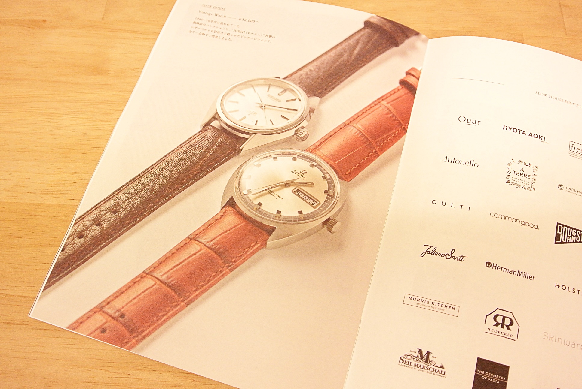 夏の終わりの暑さの中に秋の気配が漂うはずの9月の始まりは、そんな風情を感じる間もなく次の季節が訪れてしまったようです。短すぎた夏を名残惜しく思いながらも束の間の涼やかな季節を楽しんでいます。そんな2015年の9月、インテリアショップの『ACTUS』が手掛けるライフスタイルショップ『SLOW HOUSE』の新たな店舗が二子玉川のマロニエコートにオープンすることになり、そのオープニングのフェアとしてビンテージウォッチを販売させて頂くことになりました。
